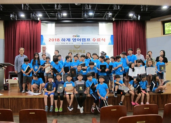 창원대학교 어학교육원은 경상남도 창원교육지원청과의 협약을 통해 지난 1일부터 3주간 어학교육원 강의실 및 캠퍼스 일원에서 지역 초등학생 42명(3~6학년)이 참가한 '하계 CWNU 영어캠프'를 운영하고, 참여 학생들의 수료식을 개최했다고 24일 밝혔다.