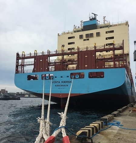 ▲세계 최초로 북극항로를 통과하는 컨테이너 선박 'Venta Maersk'호 모습. (사진=BPA)