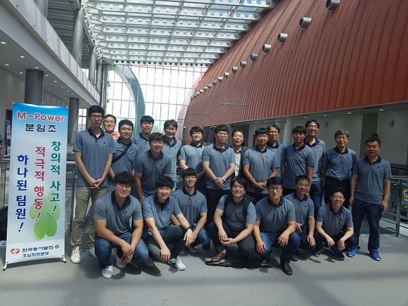 ▲동서발전 호남화력본부 M-Power 분임조가 대통령상 금상을 수상한 후 단체 기념촬영을 하고 있다. (사진=동서발전)
