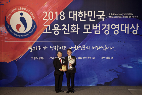 '2018 대한민국 고용친화 모범경영대상'은 대한민국의 고용친화 모범경영을 실천하고 있는 기업 및 지방자치단체, 공공기관 등을 발굴 및 선성하고 이를 모범사례로 널리 알리어 대한민국 경제발전과 지속적인 미래성장에 이바지하고자 하는 행사로 4차례의 최종심의를 거쳐 부문별 우수기관을 선정했다.
