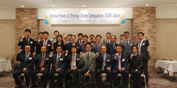 ▲19일 오사카에서 열린 2018 일본수출로드쇼에서 관계자들이 기념촬영을하고 있다. (사진제공=남동발전)