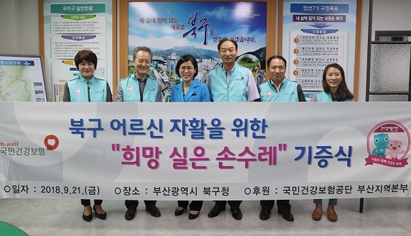 국민건강보험공단 부산지역본부는 21일 부산 북구청 구청장실에서 '희망실은 손수레' 기증식을 가졌다.