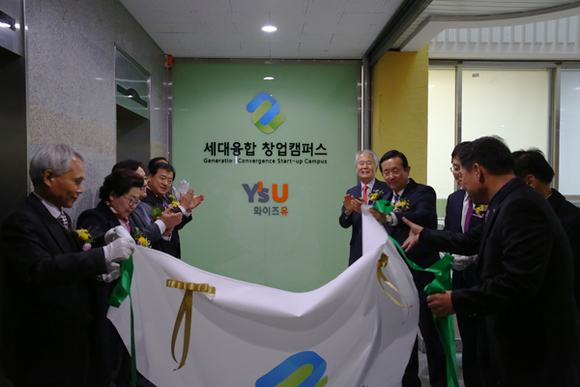 ▲세대융합 창업캠퍼스사업단 현판식 장면. (사진제공=와이즈유)