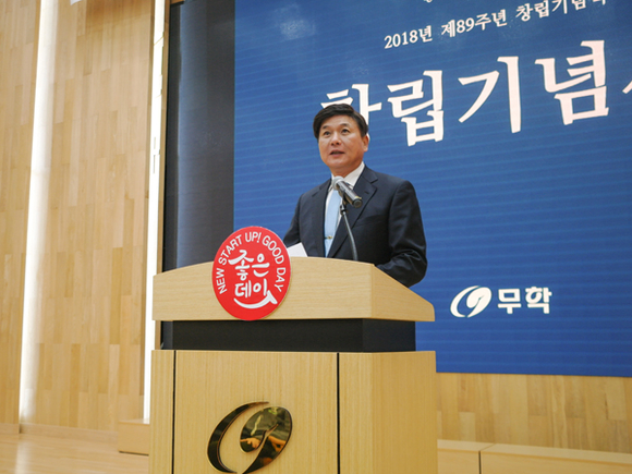 무학은 1일 창원시 마산회원구 무학 창원1공장 다목적홀에서 최재호 무학그룹 회장과 임직원들이 참석한 가운데 창립 89주년 기념식과 신경영 선포식을 개최했다.