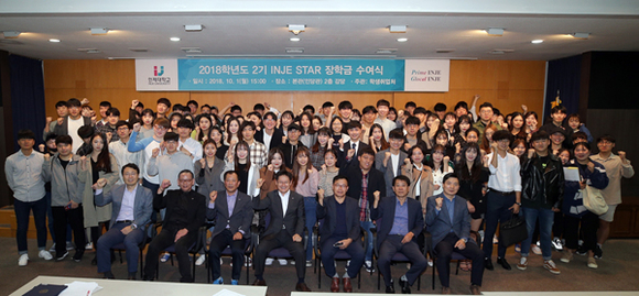 인제대학교는 지난 1일 오후 본관 대강당에서 '2018학년도 2기 인제스타장학금 수여식'을 개최했다.