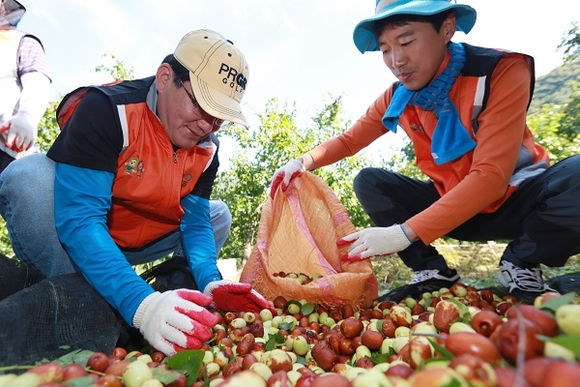 경남농협은 2일 밀양시 단장면 구천마을에서 대추 수확에 구슬땀을 흘렸다.