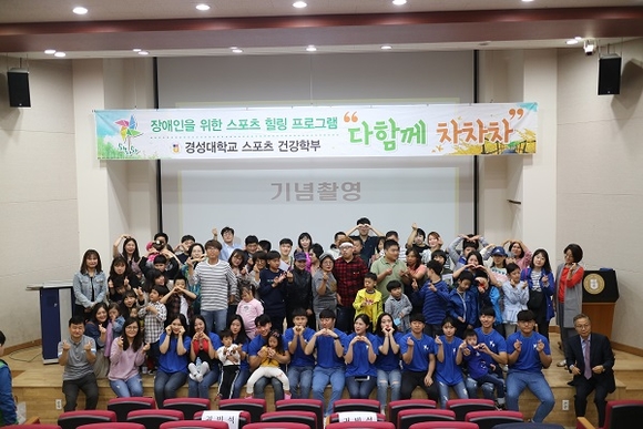 장애인을 위한 체육 프로그램인 '다함께 차차차'는 지난 `14년 9월부터 실시되고 있으며, 부산시 16개 지역구 장애인을 대상으로 건강증진과 지역사회와의 연계를 통한 장애인의 생활체육 활성화를 목표로 하고 있다. 무상으로 진행되는 이 프로그램은 스포츠건강학과 재학생들의 재능기부와 지역 사회봉사자들의 봉사를 통해 운영된다.