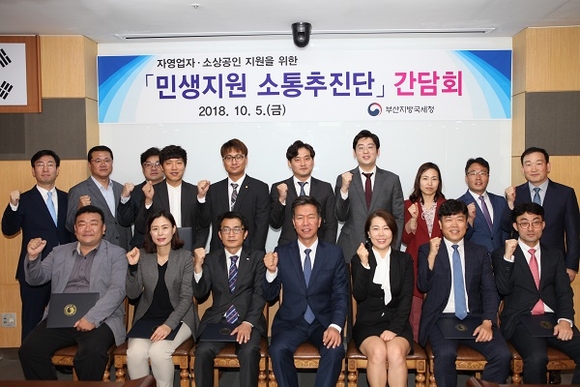 부산지방국세청은 5일 청사 8층 회의실에서 민·관합동협의체인 '민생지원 소통추진단' 출범식을 갖고, 자영업자·소상공인 세정지원을 위한 간담회를 열었다.