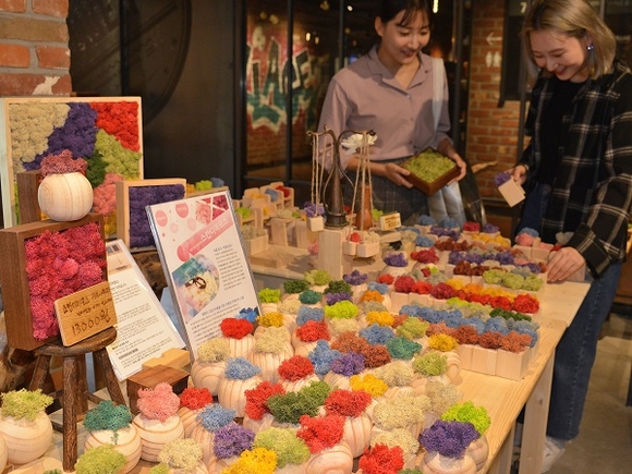 롯데백화점 부산본점 7층 빌리지 7 오월공방 매장에 살아있는 천연이끼로 불리는 '스칸디아모스'를 선보여 눈길을 끌고 있다. 스칸디아모스는 집안 분위기 연출 소품과 함께 공기정화, 탈취, 천연가습, 실내 소음 감소 등의 다양한 기능이 있다. (사진=롯데쇼핑)