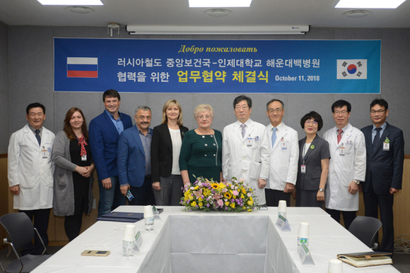 인제대학교 해운대백병원은 11일 병원 5층 회의실에서 러시아철도 중앙보건국과 상호협력을 위한 양해각서를 체결했다.