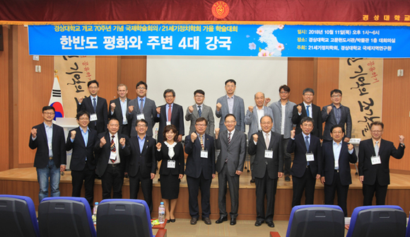 21세기 정치학회와 경상대학교 국제지역연구원은 경상대학교 개교 70주년 국제학술대회를 '한반도 평화와 주변 4대 강국'이라는 주제로 11일 오후 1시부터 6시까지 박물관 및 고문헌도서관 1층 대회의실에서 개최한다.