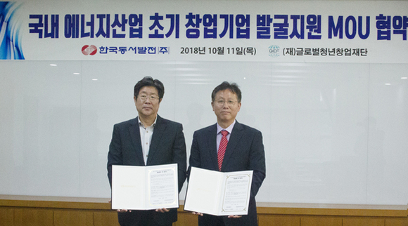한국동서발전는 11일 오후 3시 본사(울산 중구 소재)에서 중소기업벤처부 인증 창업 전문기관인 (재)글로벌청년창업가재단과 '국내 유망 에너지산업 초기 창업기업 발굴·지원 업무 협약식'을 개최했다고 밝혔다.
