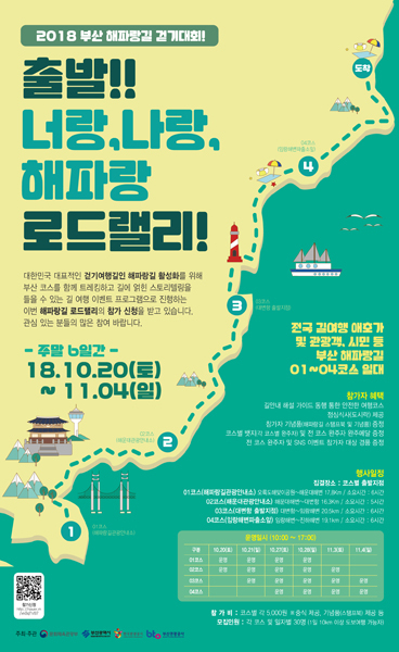 부산시와 부산관광공사는 걷기 좋은 계절을 맞이해 부산소관 해파랑길을 길안내 가이드와 함께 걸으며 가을을 만끽할 수 있는 프로그램으로 '출발! 너랑, 나랑, 해파랑 로드랠리!' 이벤트투어를 오는 20일부터 11월 4일까지 매주 주말 운영한다고 12일 밝혔다.