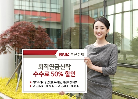 BNK부산은행은 사회복지시설(법인), 유치원, 어린이집을 대상으로 퇴직연금신탁 수수료(운용 및 자산관리수수료)를 할인한다고 15일 밝혔다.