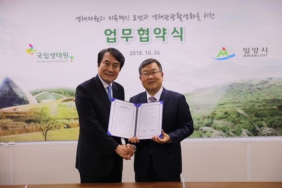 경남 밀양시는 국립생태원과 24일 충남 국립생태원 회의실에서 생태관광센터의 운영 및 생태관광 활성화를 위한 업무협약(MOU)을 체결했다.