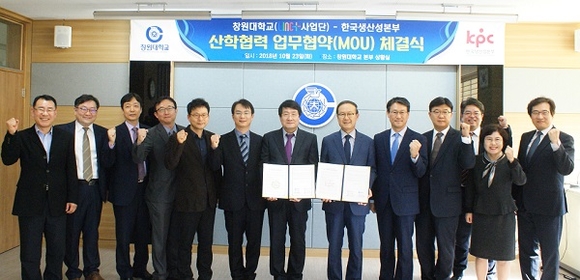 ▲창원대-한국생산성본부 산학협력 MOU 체결식 모습. (사진=창원대)