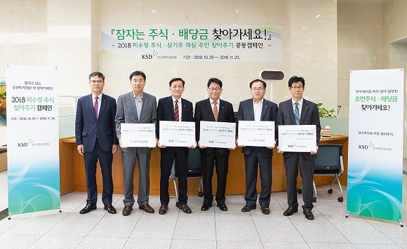 한국예탁결제원은 증권업계와 명의개서대행기관(하나은행, 국민은행) 공동으로 29일부터 한달 간 '2018 미수령주식 및 실기주과실 주인 찾아주기 캠페인'을 실시한다고 밝혔다.