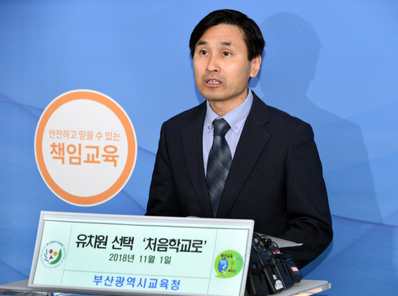 부산교육청 김진수 부교육감은 11월 1일 오전 11시 시교육청 기자실에서 기자회견을 갖고 '처음학교로' 미참여 유치원에 대한 강력 제재 방침과 '처음학교로'를 이용한 2019학년도 유치원 유아모집·선발 참여 확대 방안을 발표했다.
