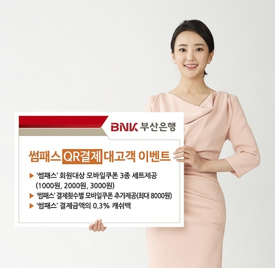 BNK부산은행은 모바일 전문은행 썸뱅크가 출시한 간편결제 서비스인 '썸패스 QR결제'의 오프라인 결제 활성화를 위해 내년 1월 말까지 대고객 이벤트를 실시한다고 5일 밝혔다.