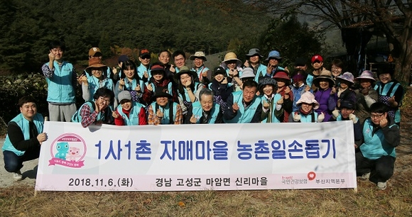 국민건강보험공단 부산지역본부는 6일, 1사1촌 자매결연마을인 경남 고성군 마암면 신리마을 일대에서 농촌일손돕기 봉사활동을 펼쳤다.