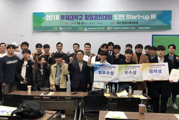 ▲부경대 창업경진대회 참가자들이 기념촬영을 하고 있다. (사진제공=부경대)