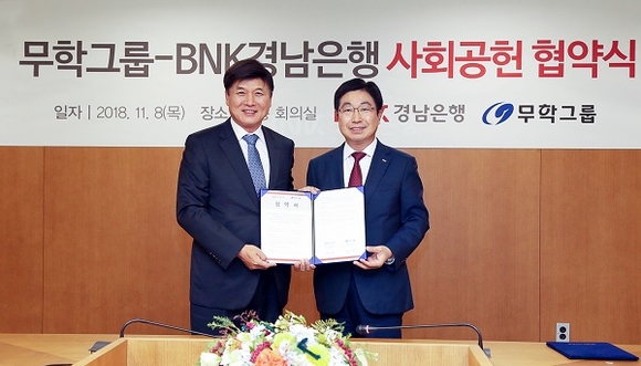 무학과 BNK경남은행은 나눔과 봉사 확산과 정착을 위한 사회공헌 협약을 체결했다.