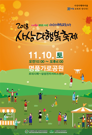 부산시북부교육지원청은 오는 10일 오전 10시부터 오후 4시까지 사상구 명품가로공원에서 초·중·고·특수학교 학생과 학부모, 지역주민, 지역 유관기관 관계자 등 2,000명이 참가한 가운데 '2018 사상다행복축제'를 개최한다.