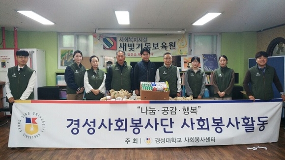 경성대학교가 지난 12일 부산 남구에 위치한 새빛기독보육원을 방문해 인형 기증식과 함께 보육원 내 환경미화 봉사활동을 펼쳤다.