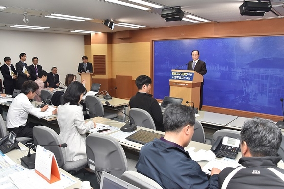 오거돈 부산시장은 14일 오전 시청 브리핑룸에서 기자회견을 열고 “사회양극화 해소 및 고용-복지-성장 선순환 구조의 마중물 역할을 위해 용역근로자의 정규직 전환 결정을 올해 말까지 완료할 계획”이라고 밝혔다.