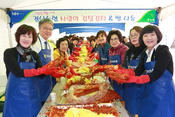 경남농협은 15일 창원컨벤션센터 광장에서 '2018년 경남농협 사랑의 김장김치& 쌀 나눔 행사'를 가졌다.