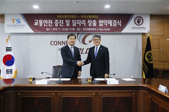 한국교통안전공단은 한국교통대학교와 16일 한국교통대 대학본부에서 양질의 일자리 창출을 위한 '교통안전 선진화 및 일자리 창출' 업무협약을 체결했다고 밝혔다.
