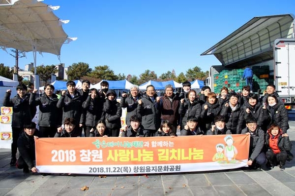 무학그룹은 22일 창원시 용지문화공원에서 열린 '2018 사랑의 김치나눔 한마당'에서 최재호무학그룹 회장을 비롯한 무학 임직원 40여 명이 행사에 참석해 김장 김치 만들기 봉사활동을 진행했다고 밝혔다.