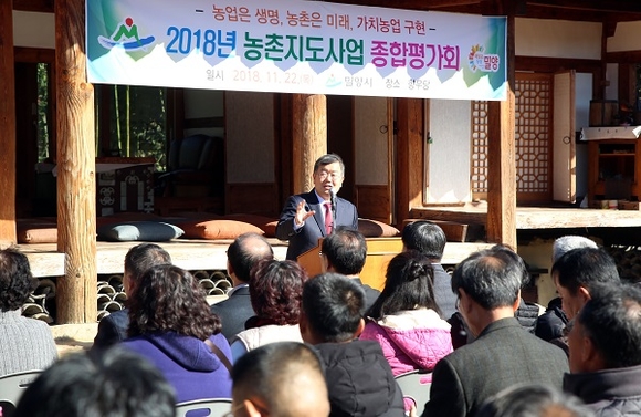 경남 밀양시는 22일 산내면에 위치한 농촌교육농장 육성사업장인 '향우당'에서 2018년 농촌지도사업 45개 사업을 대상으로 종합평가회를 가졌다.