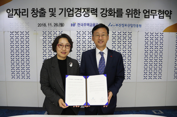 한국주택금융공사(HF)는 26일 부산정보산업진흥원과 '일자리 창출 및 기업경쟁력 강화를 위한 업무 협약'을 체결했다고 밝혔다.