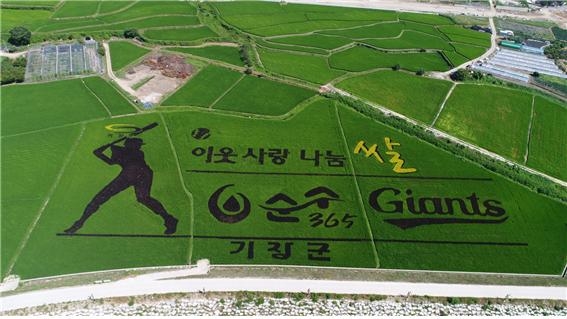 지난 7월 21일 사직야구장에서 기장군, 부산시상수도사업본부와 ㈜롯데자이언츠 3개 기관이 업무협약을 체결하고, 논아트 사업지를 조성해 이색경관을 연출했다.