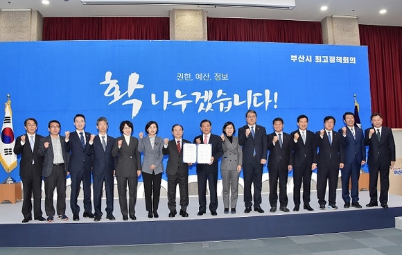 아울러 회의에서는 이러한 자치의 패러다임을 바꾸는 결단을 담아 '부산시 최고정책회의 합의문'을 전격 채택하고 함께 추진해 나가기로 했다.