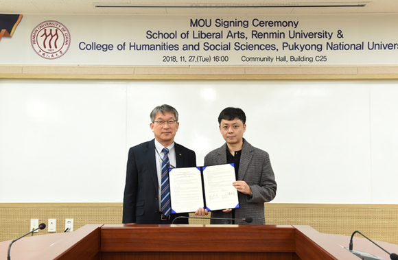 부경대학교 인문사회과학대학과 중국 인민대학교 문학대학은 지난 27일 오후 부경대 인문사회·경영관 5층 커뮤니티홀에서 단과대학 간 학술교류 MOU를 체결했다고 밝혔다.