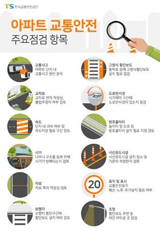 공단은 2012년부터 아파트 단지 사고 예방을 위해 연초에 신청을 받아 무료로 “아파트 교통안전 컨설팅 서비스”를 제공하고 있다.