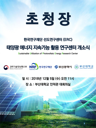 부산대는 한국연구재단에서 추진하는 2018년도 '선도연구센터' 지원사업 공학분야(ERC)에 선정돼 '태양광 에너지 지속가능 활용 연구센터'를 운영하게 됐다.