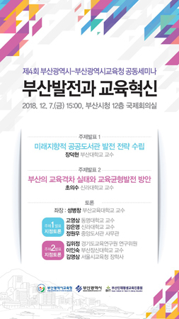이번 세미나는 부산시교육청과 부산시, 부산인재평생교육진흥원등이 함께 주최한다.