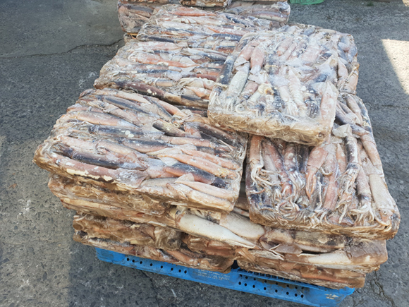 남해해경에 따르면 경남 사천의 수산물 가공·유통업체 A사 관리부장 S씨(64세) 등 2명은 올해 10월 한 달간 중국산 오징어를 가공해 만든 '오징어 할복 제품' 17톤(출하가격 약 1억 3천만원 상당)을 국내산으로 둔갑시켜 전국에 식재료로 판매한 것으로 밝혀졌다.