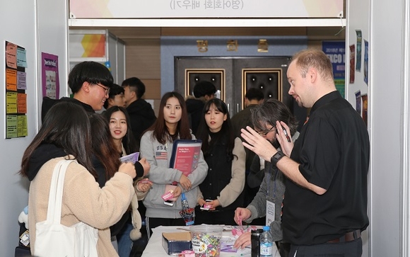 먼저 창조관 1층 로비에서는 외국인 교수를 포함한 교직원과 재학생 60여 명이 외국어 강좌, 영어 튜더링 및 영작문 센터 등 다양한 학습부스가 마련됐다.
