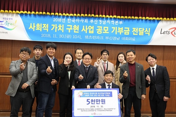 한국마사회 부경본부는 지난달 30일 렛츠런파크 부경 본관에서 '2018년 사회적가치 구현 공모사업' 기부금 전달식을 가졌다.