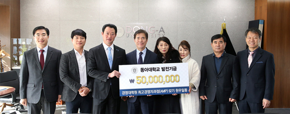 조 회장을 비롯한 52기 원우 일동은 "동아대 경영대학원에서 최고경영자과정을 밟으며 다른 어떤 대학보다 알찬 강의를 들을 수 있어 많은 도움을 받았다"며 "경영학 수업뿐 아니라 인문학 분야 등도 다양하게 접할 수 있어 사고의 전환을 할 수 있는 좋은 기회가 됐다"고 말했다.