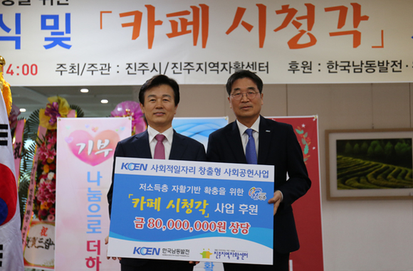 한국남동발전은 11일 진주시청에서 저소득층 자활기반 확충을 위한 사회적일자리 창출 카페사업인 '카페 시청각' 개소식을 가졌다고 밝혔다.
