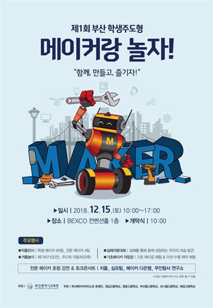 부산시교육청은 오는 15일 오전 10시부터 오후 5시까지 해운대 벡스코 컨벤션홀에서 학생, 교직원, 시민들이 참석한 가운데 '제1회 메이커랑 놀자!' 행사를 개최한다고 13일 밝혔다.