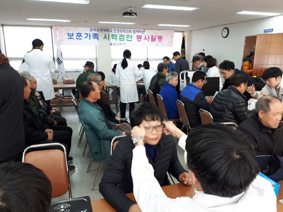 이날 학생들은 국가유공자 등 보훈가족을 대상으로 울산보훈지청으로부터 돋보기 지원을 받아 120여명의 무료시력검안 봉사활동을 진행했다.