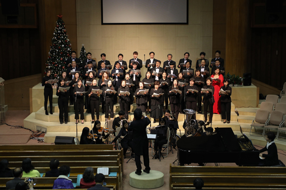교직원 신우회의 합창으로 시작한 음악회 행사는 ▲최윤희·정경님 교수의 '크리스마스 판타지' ▲피아노·오르간 듀오, 김지호 교수 '여호와는 나의 목자시니' ▲테너 독창, 양송미 교수 '하나님께 소망을 두라' ▲메조소프라노 독창, 임병원 교수 '하나님 은혜' ▲바이올린 솔로 등 다채로운 순서로 꾸며졌다.