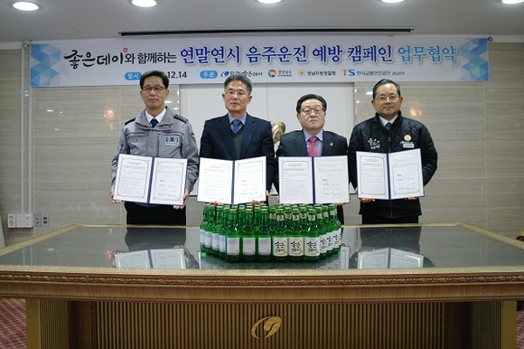 14일 무학은 경남 창원시 소재 무학 창원1공장에서 경남도, 한국교통안전공단, 경남지방경찰청과 손잡고 '음주운전 예방 캠페인'을 위한 업무협약식을 가졌다.