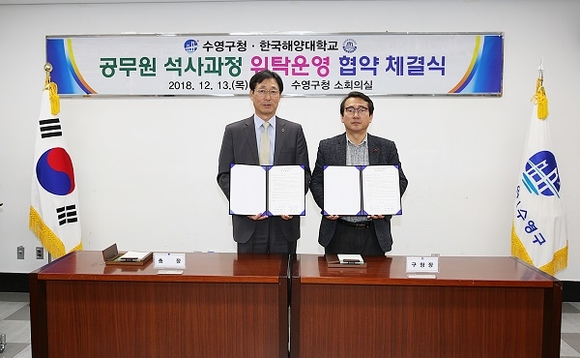 이번 협약은 양 기관이 수영구 소속 직원들의 직무능력 향상을 위해 재교육을 담당할 계약학과를 개설하여 지역사회와 양 기관의 발전을 도모하기 위해 마련됐다. 한국해양대는 오는 1월부터 수영구청 직원 대상 신입생을 모집해 3월부터 정규 과정에 들어갈 예정이다.